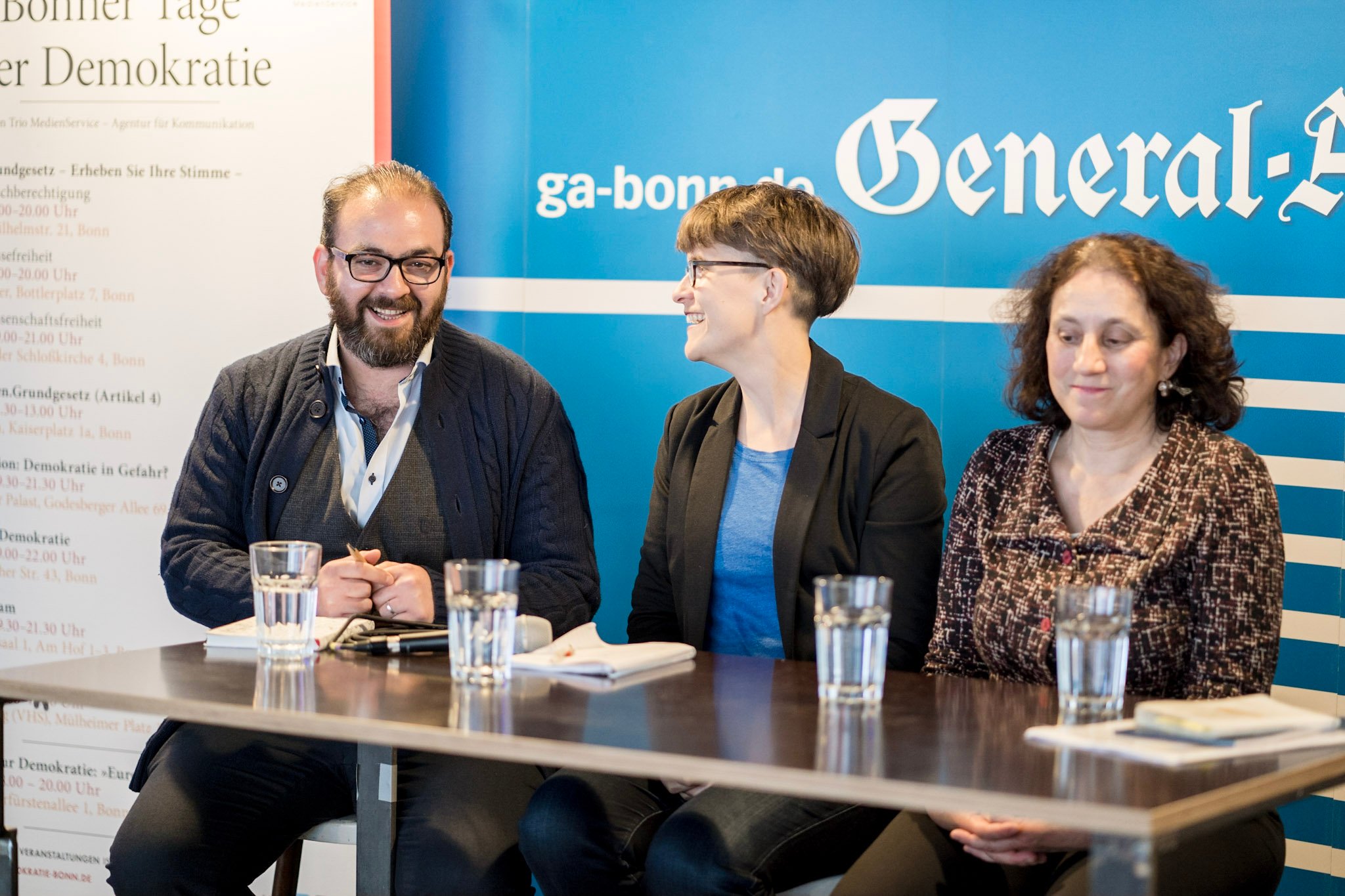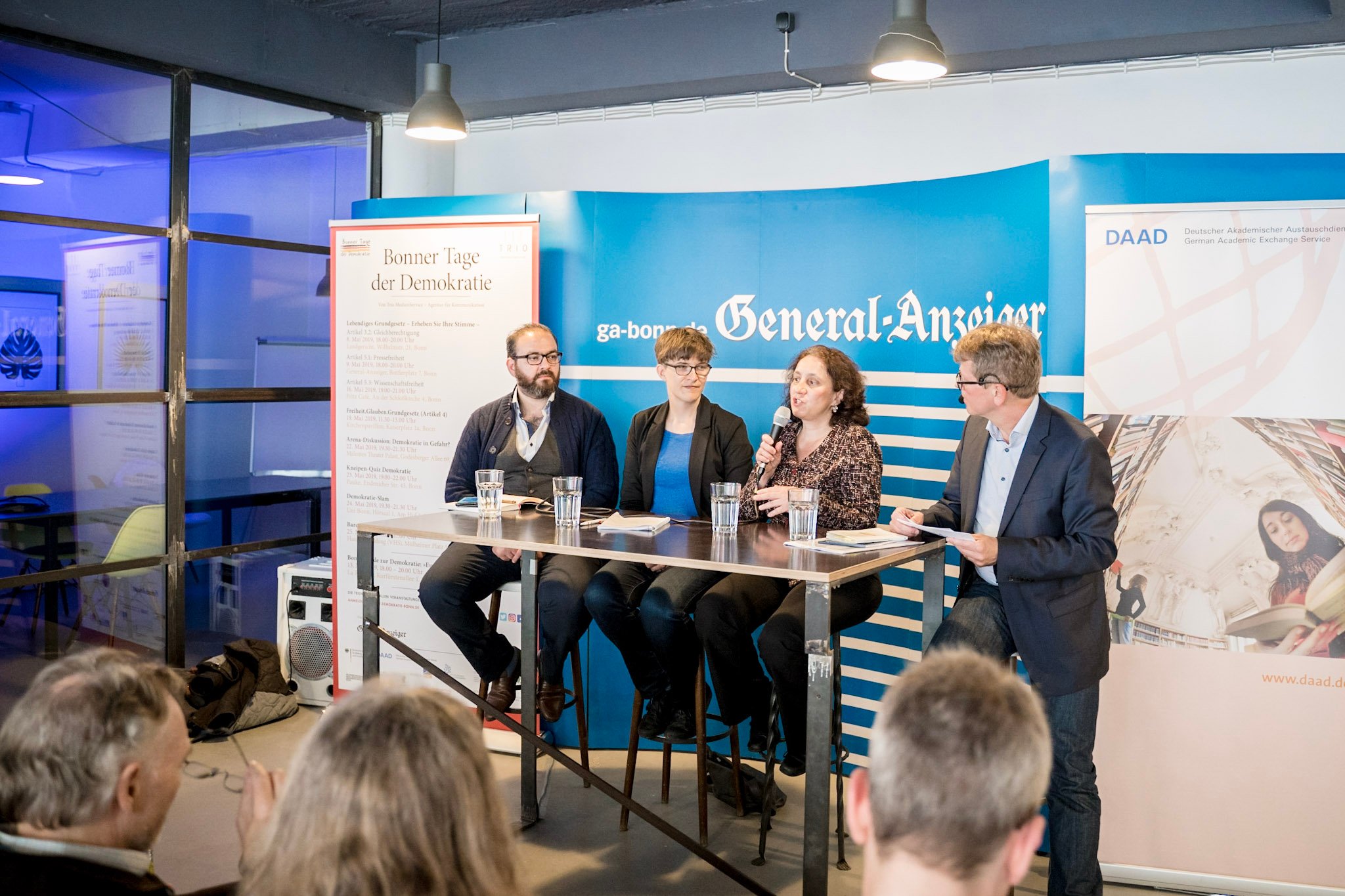 „Eine Zensur findet nicht statt“ – das sichert Artikel 5, Absatz 1 des Grundgesetzes. Wie steht es tatsächlich um die Freiheit der Presse und der Berichterstattung hierzulande wie auch weltweit? Dieser Frage ging die interaktive Veranstaltung „Lebendiges Grundgesetz“ im Rahmen der „Bonner Tage der Demokratie“ nach. In Zusammenarbeit mit dem Deutschen Akademischen Austauschdienst (DAAD) wurde das Thema Pressefreiheit mitten in der Bonner Innenstadt mit den Bürgerinnen und Bürgern diskutiert.